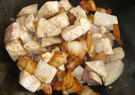 芋頭性平,味甘辛。能益脾氣,調中氣,化痰散結。常食芋頭可增強人體免疫力,防止癌癥,由于其中氟的含量很高,可以潔白牙齒。五花肉,能燉出天然的膠質,對美容皮膚也具有一定的功效。定量吃,不會肥胖。